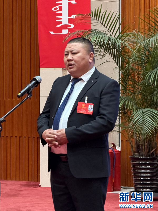 内蒙古自治区人大代表、赤峰市翁牛特旗委书记孟和。新华网发(刘晓祺 摄)