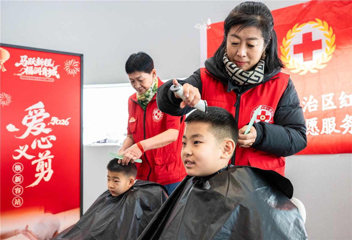 志愿者为市民剪发。