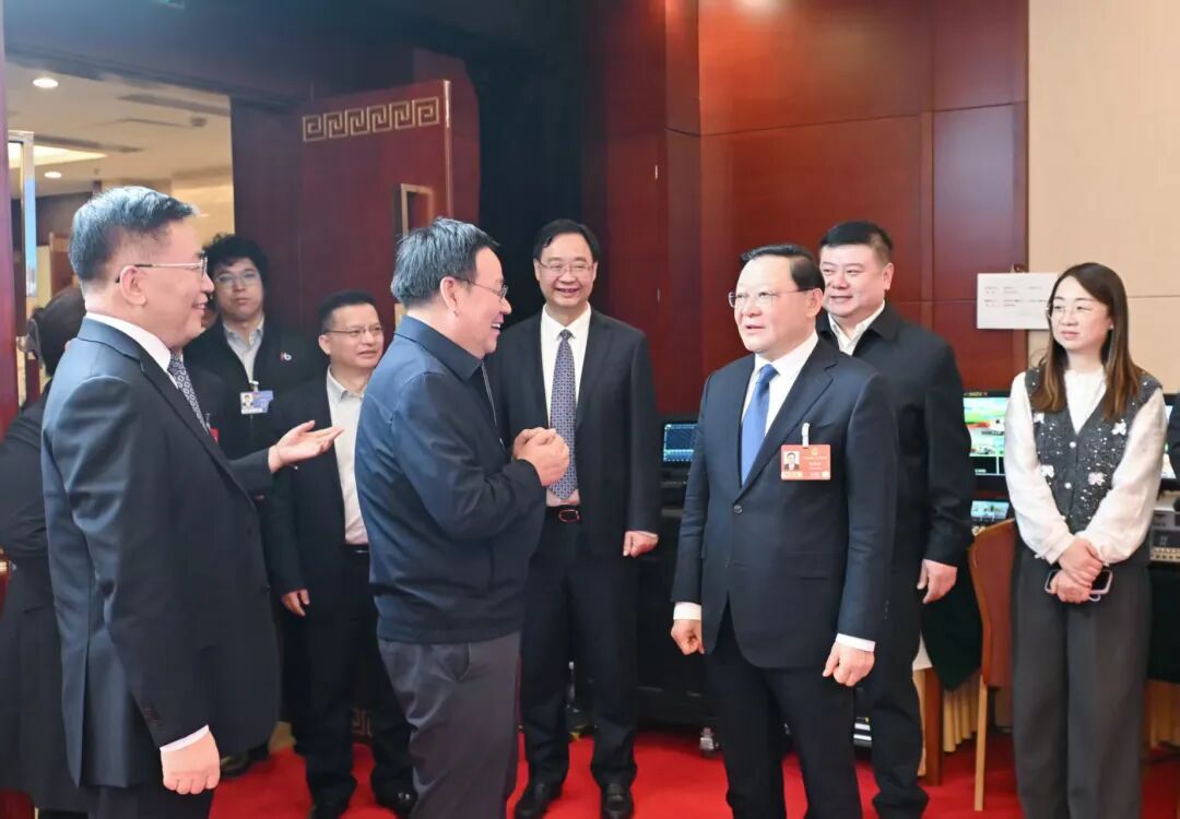 3月6日,自治区党委书记、人大常委会主任王伟中,自治区党委副书记、自治区人民政府主席包钢在内蒙古代表团驻地看望慰问参加全国两会报道的自治区媒体记者。