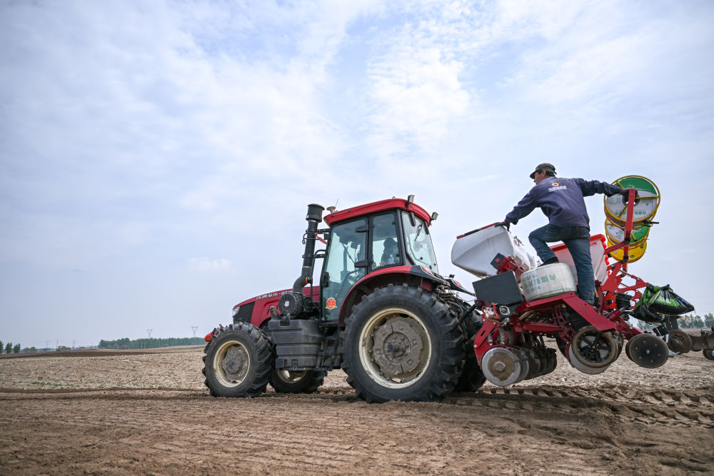 通辽农民驾驶北斗导航的拖拉机播种 连振 摄