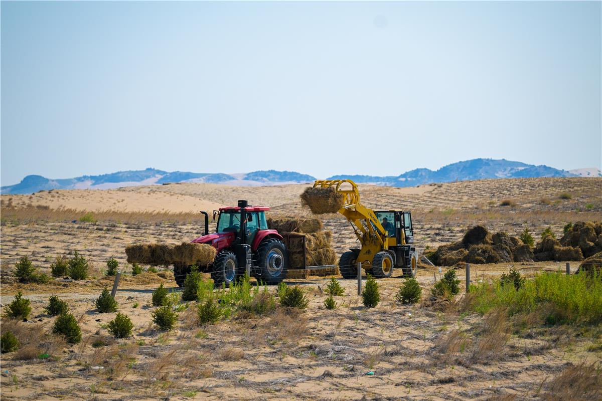 赤峰市翁牛特旗治沙项目区运送制作草方格的稻草。(资料图 本报记者 孟和朝鲁 摄)