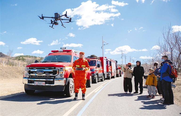 4月5日,在呼和浩特市新城区5万亩森林公园,消防员正利用无人机对林区开展空中巡查。连日来,呼和浩特消防救援机动支队结合清明祭扫、踏青出游等出行高峰特点,在辖区重点林区、客流集中区域持续开展消防宣传与安全巡查工作,通过“宣传引导+机动队伍前置驻防”的模式,筑牢春季森林草原消防安全防线。草原云·内蒙古新闻网记者 怀特乌勒斯 摄