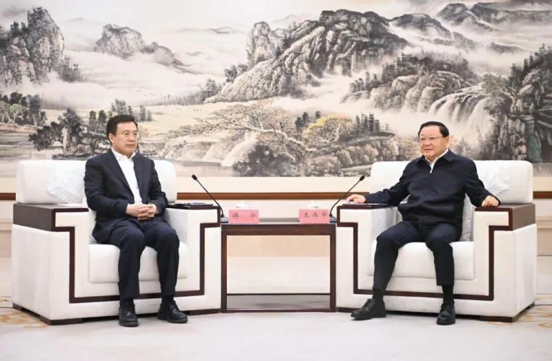 4月12日,自治区党委书记、人大常委会主任王伟中在呼和浩特会见新华通讯社社长、党组书记傅华一行。