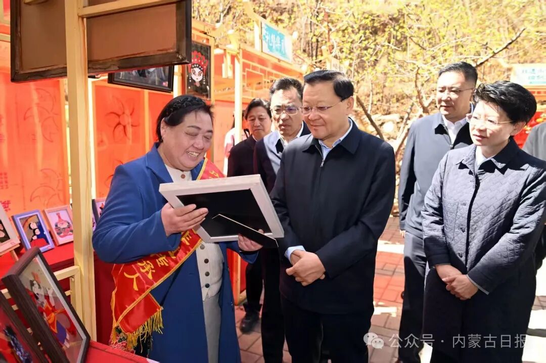 4月21日,自治区党委书记、人大常委会主任王伟中在莫尼山非遗小镇调研文旅产业发展等情况。草原云·内蒙古新闻网记者 马建兵 摄